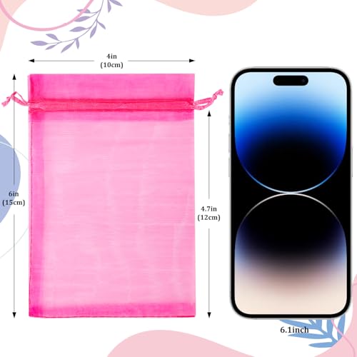 Specification: 100pcs Organza Bags, Hot Pink Mesh Drawstring Gift Bags, 4x6inch Jewelry Pouches Small Sachet for Christmas Candy Party Favor
