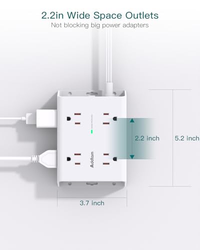 - 【Wide Space Outlets & Space Save】- 3-side design and each AC outlet with 2.2 inches space in between, larger than other 1.5-inch/1.8-inch socket. Making it enough to fit big adapters and suitable for all kinds of equipment. The compact size (5.2*3.7*1.2 In) saves more space, essentials for the home, office, and college dorm
