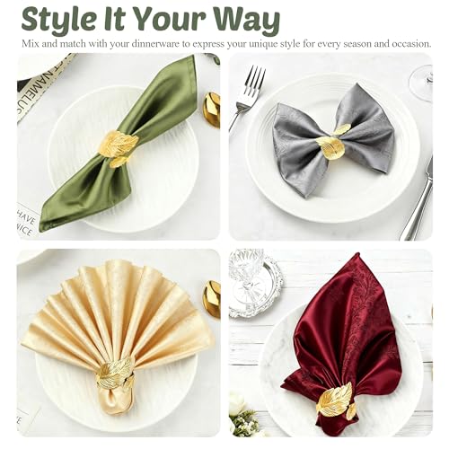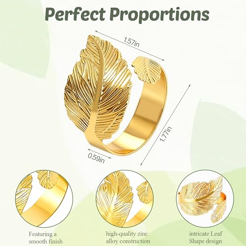 Specification: 12-Pack Elegant Napkin Rings, Premium Metal Napkin Holders for Wedding, Daily Dining & Holiday Decor, Polished Gold & Silver Napkin Rings Set for Table Setting (Leaf Shaped-Gold)