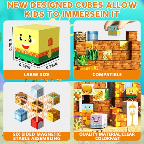 Specification: 150 PCS Magnetic Blocks-Magnetic Building Blocks Cubes with 4 Expandable Magnet Baseplates, Build Creative Anime World with Magnet Cubes, STEM Toys & Ideal Xmas Birthday Gift for Kids Ages 3-12