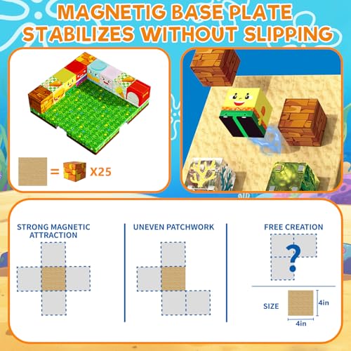 - 【Expandable Building System with 4 magnetic Base Plates】Boost creativity with 4 interlocking magnetic base plates -each equivalent to 25 magnetic blocks, enabling 4X larger structures and multi-level designs compared to standard sets – perfect for castles, bridges, and collaborative play