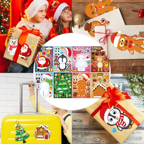 24PCS Christmas Stickers for Kids Make-a-face Sticker Make Your Own Characters Mix and Match Sticker Sheets with Full Body Design Christmas Gift Stickers for Craft, Christmas Goodie Stocking Stuffers