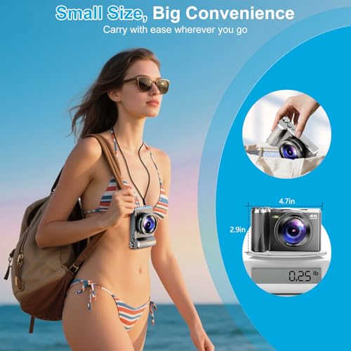 - 【0.2s AutoFocus & Easy to Use】Searching for the best beginner 4K digital camera with fast autofocus? This point-and-shoot camera locks focus in just 0.2 seconds, delivering pro-level results without any complicated settings. Perfect for teens, seniors, kids, and first-time users—simply point and shoot for stunning 4K videos and sharp photos. One of the most recommended easy-to-use vlogging cameras on the market for effortless photography and video.