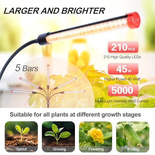 - Very Bright and Plants Love Grow Light—210 High Quality LEDs Plant Light and 45W Actual Power Grow Lamp, Higher Power Grow Light, Higher Value for You.