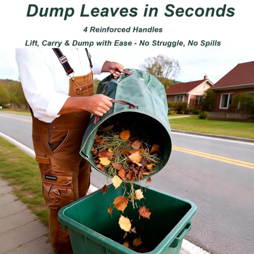 - Easy to Carry & Dump: Designed with four reinforced handles for better control. Lift, carry, and dump leaves easily without mess or struggle.