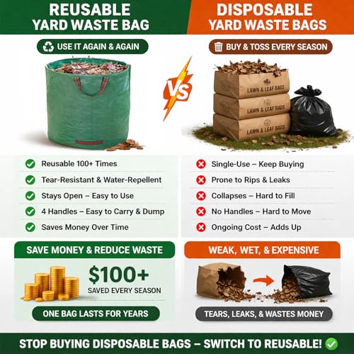 - Heavy Duty & Tear-Resistant: Made from durable polypropylene, these reusable yard waste bags handle leaves, grass, and debris without tearing. Reliable for everyday yard cleanup and tough outdoor use.