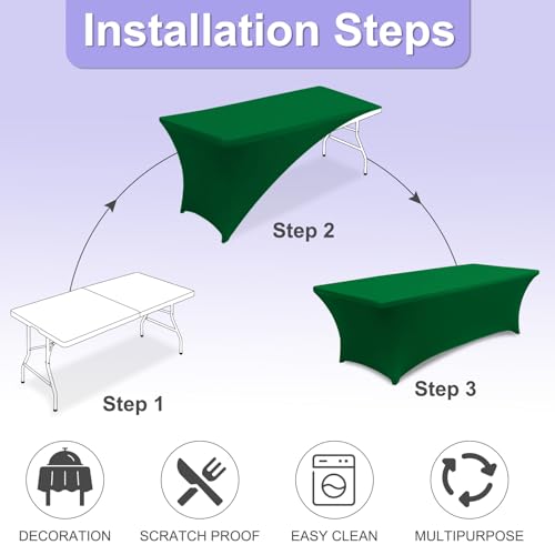 Specification: ABCCANOPY 2 Pack 6 FT Forest Green Spandex Table Cover Stretch Fitted Wrinkle Resistant Tablecloth Reuse for Rectangular Folding Table Patry Event Wedding Banquet Protector
