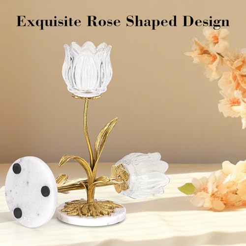 Specification: Anpdasi Candle Holder, Cut Rose Shaped Brass Candle Holder High-end Light Luxury Creative Art Crystal Glass Flower Candle Sticks Holder Decor Marble Disc Base Romantic Ambiance Table Decoration