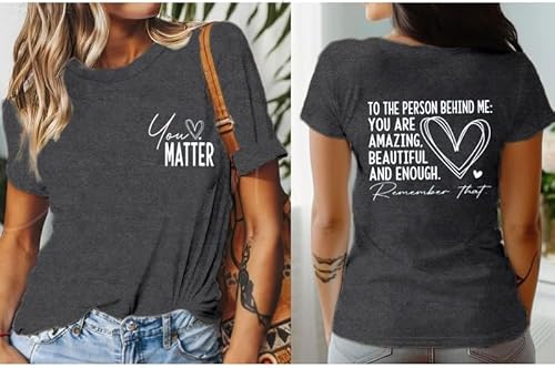 - FASHION DESIGN:You matter tshirt for women, you are amazing beautiful and enough shirt, inspirational tshirt,the front has a “you matter ” print,front and back print design shirt is durable and will not stick together or fall off after repeated cleaning.