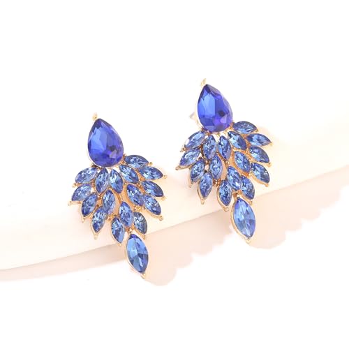 Specification: ATIMIGO Royal Blue Rhinestone Cluster Drop Earrings Elegant Crystal Statement Earrings Bridal Wedding Prom Earrings for Women