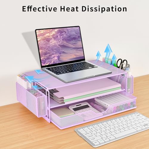Specification: AUPSEN Computer Monitor Stands Riser,2-Tier Desk Organizers and Accessories, Office Desk Accessories Organizer with Drawers and 2 Pen Holder for Office Supplies (Purple)