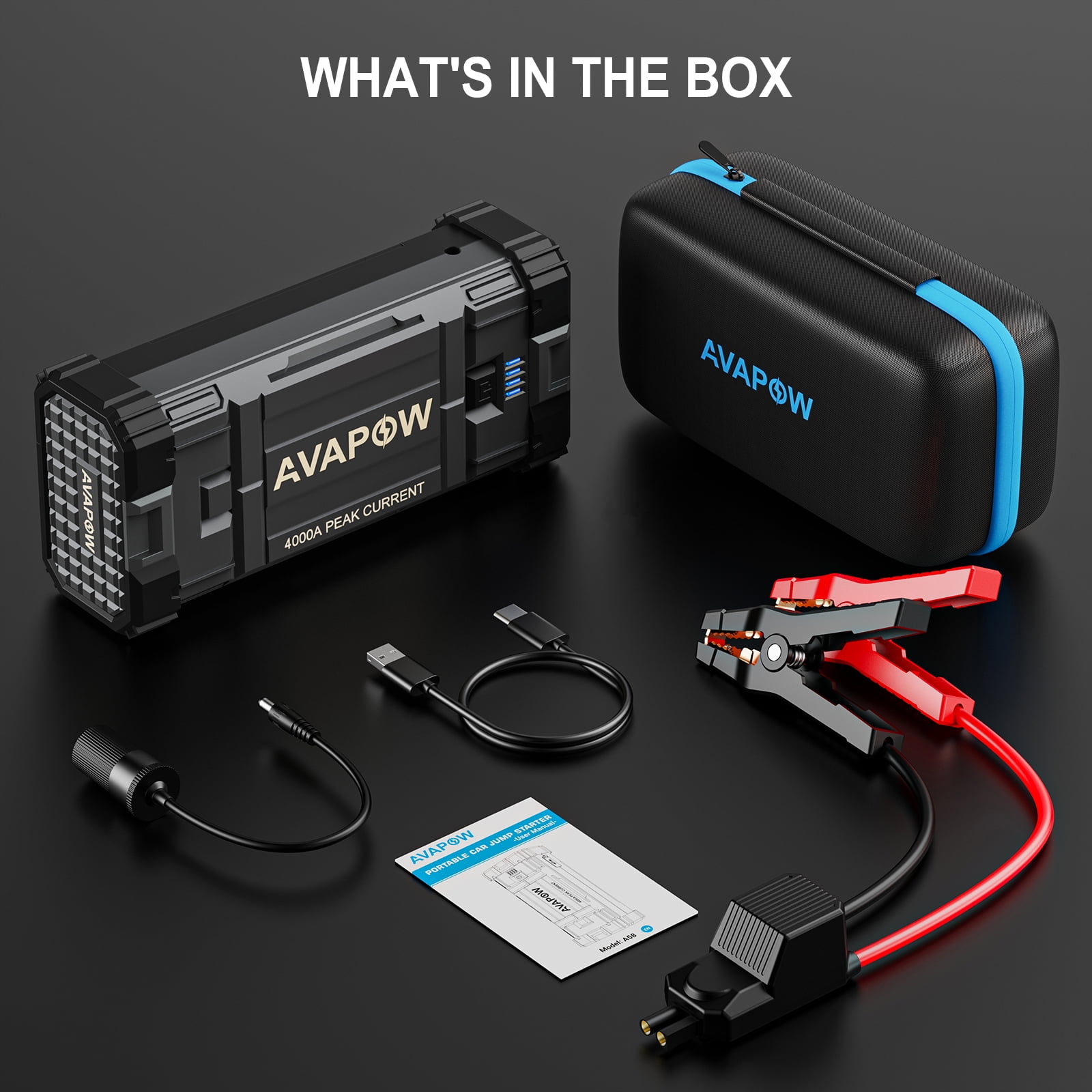 AVAPOW Car Jump Starter, 4000A Peak 27800mAh Battery Jump Starter (for All Gas or up to 10L Diesel), Battery Booster Power Pack, 12V Jump Box with LED Light, USB Quick Charge 3.0