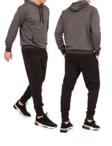 AyeGoo Men’s Jogger Sweatpants,Men’s Athletic Jogger Pants and Workout Jogger Pants with Zipper Pockets (2pcs Set) (Black/Light Grey Melange, L)