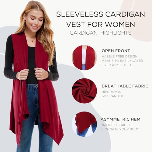 Specification: Azules Sleeveless Cardigan for Women, Soft Lightweight Duster Open Front Sleeveless Long Cardigan Vest Burgundy