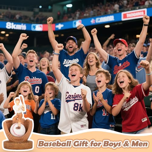 - Exquisite Handcrafted Detail: VOFSTAND hand-painted baseball decor with its vivid red stitching, adds another layer of realism, making this figurine a stunning representation of the game. Whether displayed in a living room, bedroom, or office, this baseball stand is sure to be a conversation starter, especially for those who enjoy the sport, making it the perfect baseball gift for boys 6-8, 8-12,12-14 who love the sport. Special boys baseball gifts for sons and mens, baseball coach and baseball team player or baseball fans.