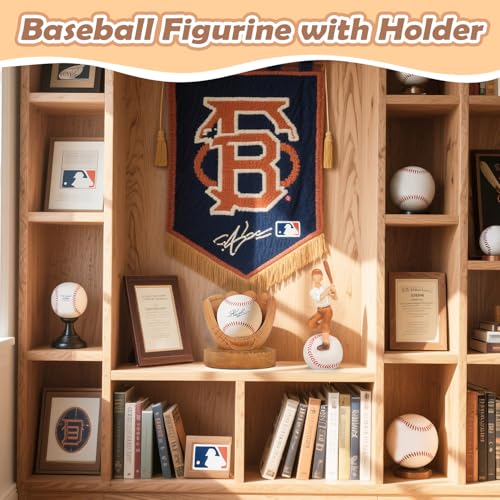 - Baseball Gift for Boys and Men: VOFSTAND baseball themed display case interactive design allows for multiple display options; the boy and baseball can be separated for a personalized arrangement. In addition to its stunning design, it can be used as an autographed baseball holder stand, allowing your son or boys, dad,husband, to proudly display a baseball in a secure and meaningful way. Whether game-winning ball or a cherished memory,this baseball figurine will hold it with care and admiration.