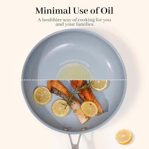- 2. Secure Strong Handle: The-riveted for exceptional strength and maneuverability, the ceramic skillet pan empowers you to transition from stovetop to oven. Unleash your inner chef with this non stick pan set ceramic cookware set non toxic—designed for induction cookware, gas, & electric stoves. The stainless steel handle stays cool while you whip up gourmet meals!