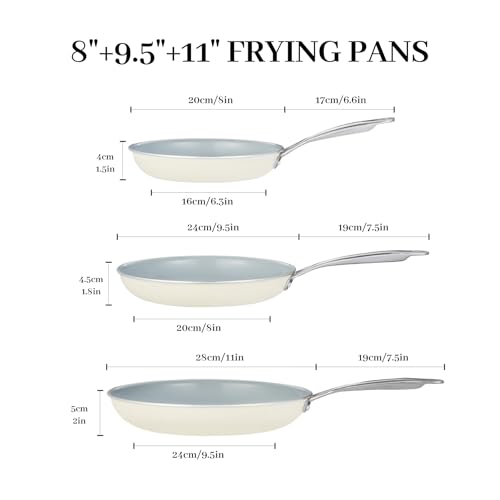 - 5. 3PCS Complete Set: include 8inch, 9.5inch, 11inch Ceramic Coating Frying Pan, Cook smarter, not harder! This 3pcs Frying pan sets for cooking nonstick, includes everything you need—frying pans nonstick set, and more. A must-have kitchen cookware sets for young home chefs!