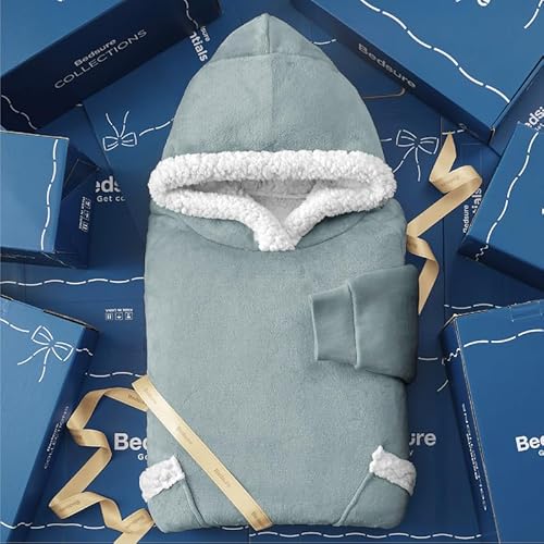 Bedsure Wearable Blanket Hoodie, Cozy Long Hooded Blanket Sweatshirt as Mothers Day Hoodie Gifts for Mom Women, Standard, Light Green