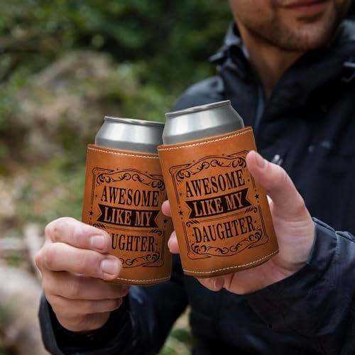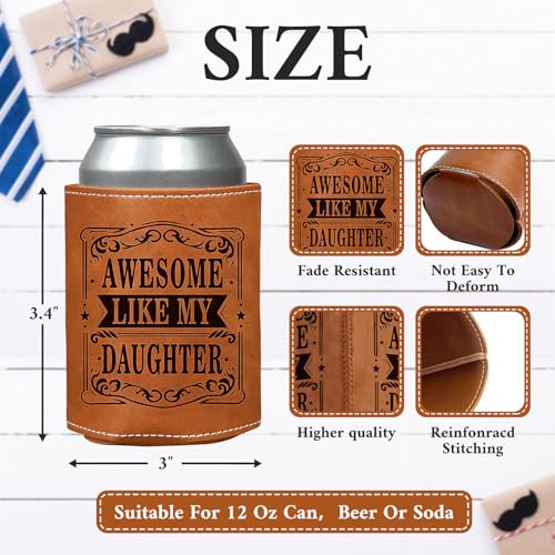 Birthday Gifts for Dad from Daughter, Awesome Like My Daughter Can Sleeve, 12 oz Leather Can Cooler for Daddy, Fathers Day Retirement Present for Father