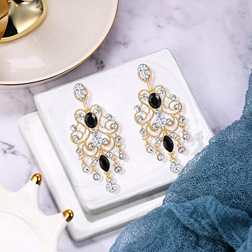 Specification: BriLove Wedding Bridal Dangle Earrings for Women Vintage Style Crystal Drop Hollow Filigree Chandelier Earring Black Gold-Toned