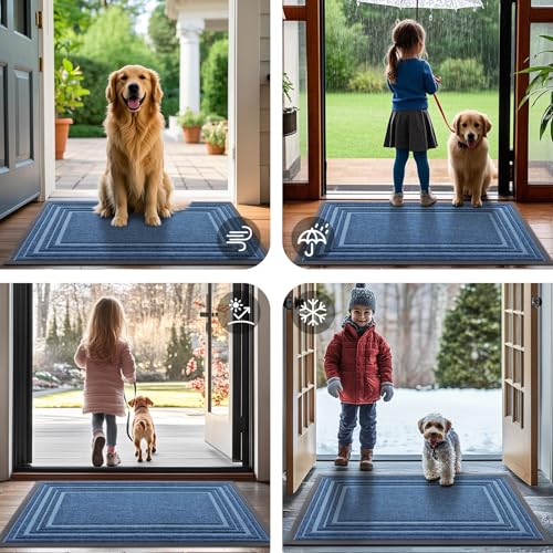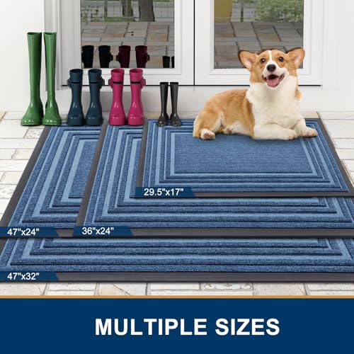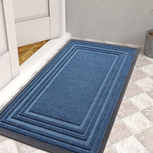 Specification: Buganda Front Door Mat Indoor Outdoor Entrance, Non-Slip Natural Rubber Doormats, Easy Clean, Low Profile, Dirt Trapper Entryway Floor Mats for Outside, Garages and Patios, 29.5×17, Light Blue
