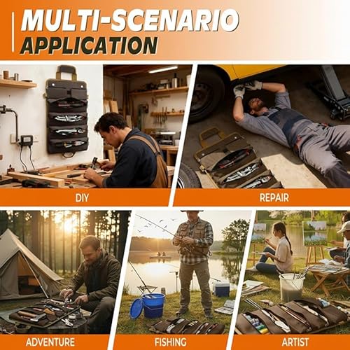 Specification: Canvas Tool Roll Up Bag for Men – Portable Wrench & Chisel Organizer Pouch with Carry Handle – Rugged Tool Wrap Storage for Carpenters, Plumbers, HVAC Techs & Home DIY (Brown)