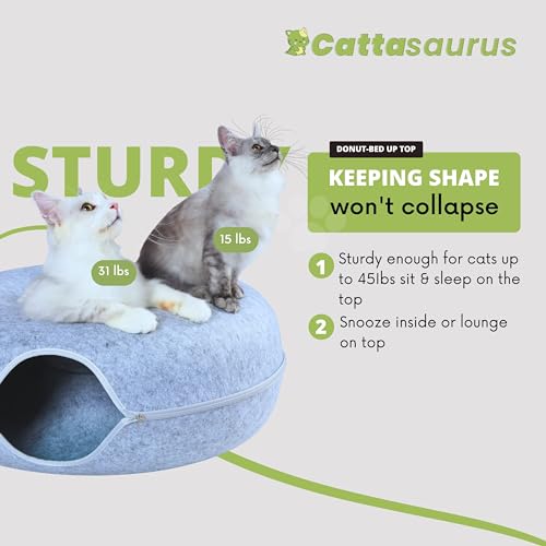 Specification: Cattasaurus Peekaboo Cat Cave Donut for Multiple & Large Cats up to 30-45 lbs, 3-in-1 Self Warming Cat Bed, Tunnel & Scratcher for Indoor Cats, Washable & Detachable Small Dog Bed (Light Gray, Jumbo)