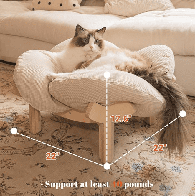 - Sturdy Construction: The base features a cross-joined dual-wooden framework that doubles structural stability, effortlessly supporting up to 40 pounds without wobbling—ensuring safe, secure sleeptime with no risk of startling your cat or puppy.