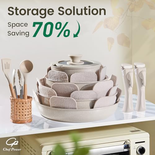 - Easy To Store – Chef Power removable cookware set makes kitchen storage simple, easy to stack and saves 70% space.