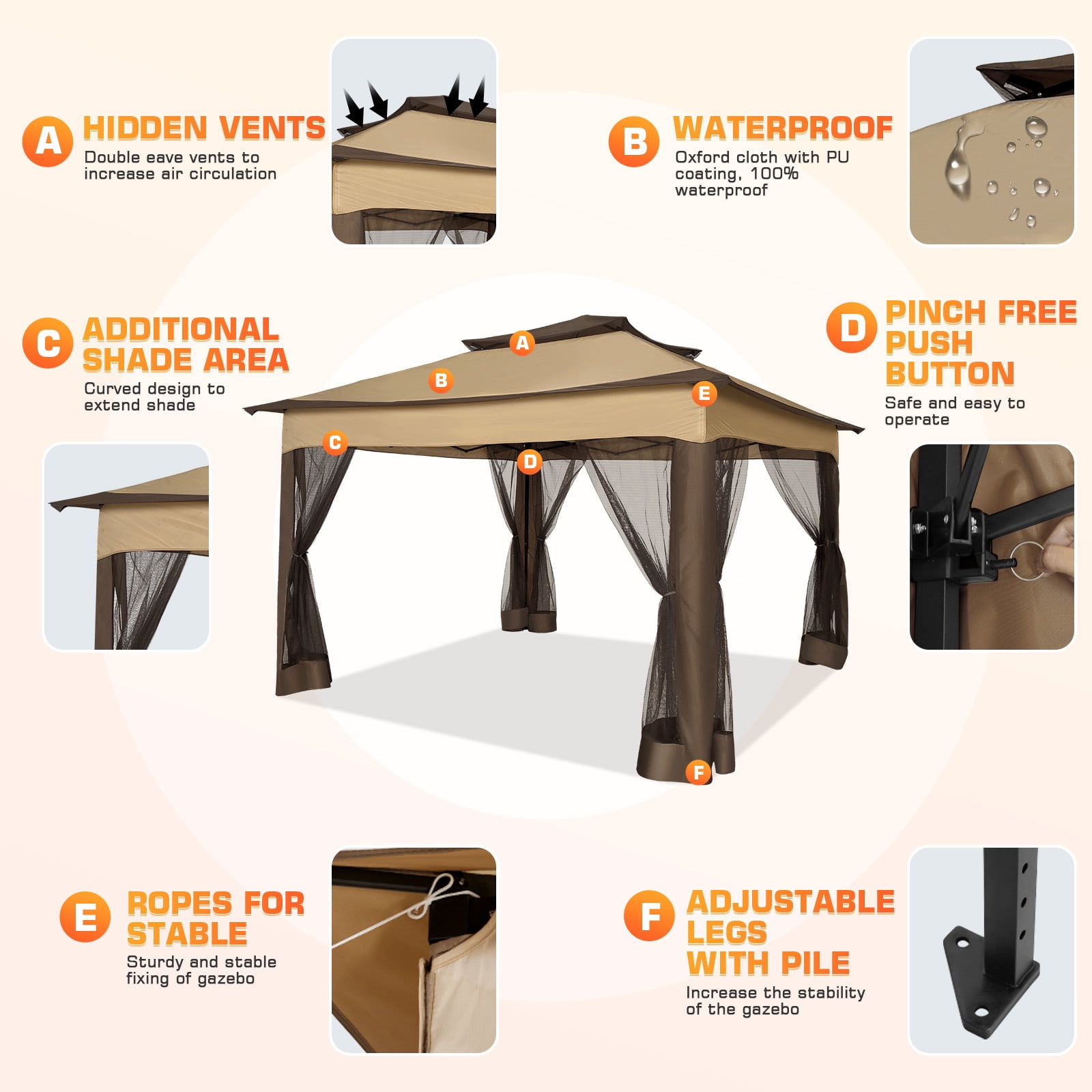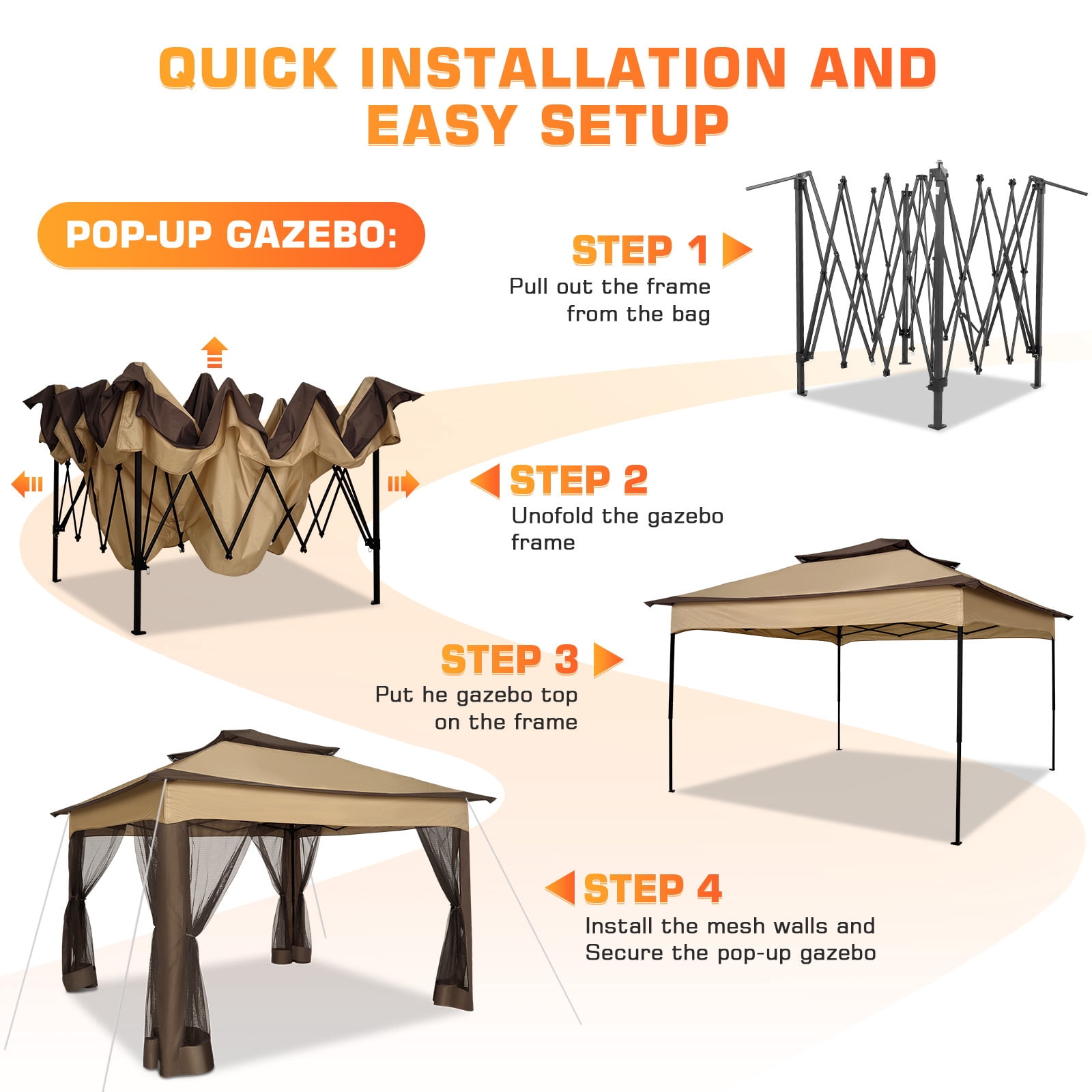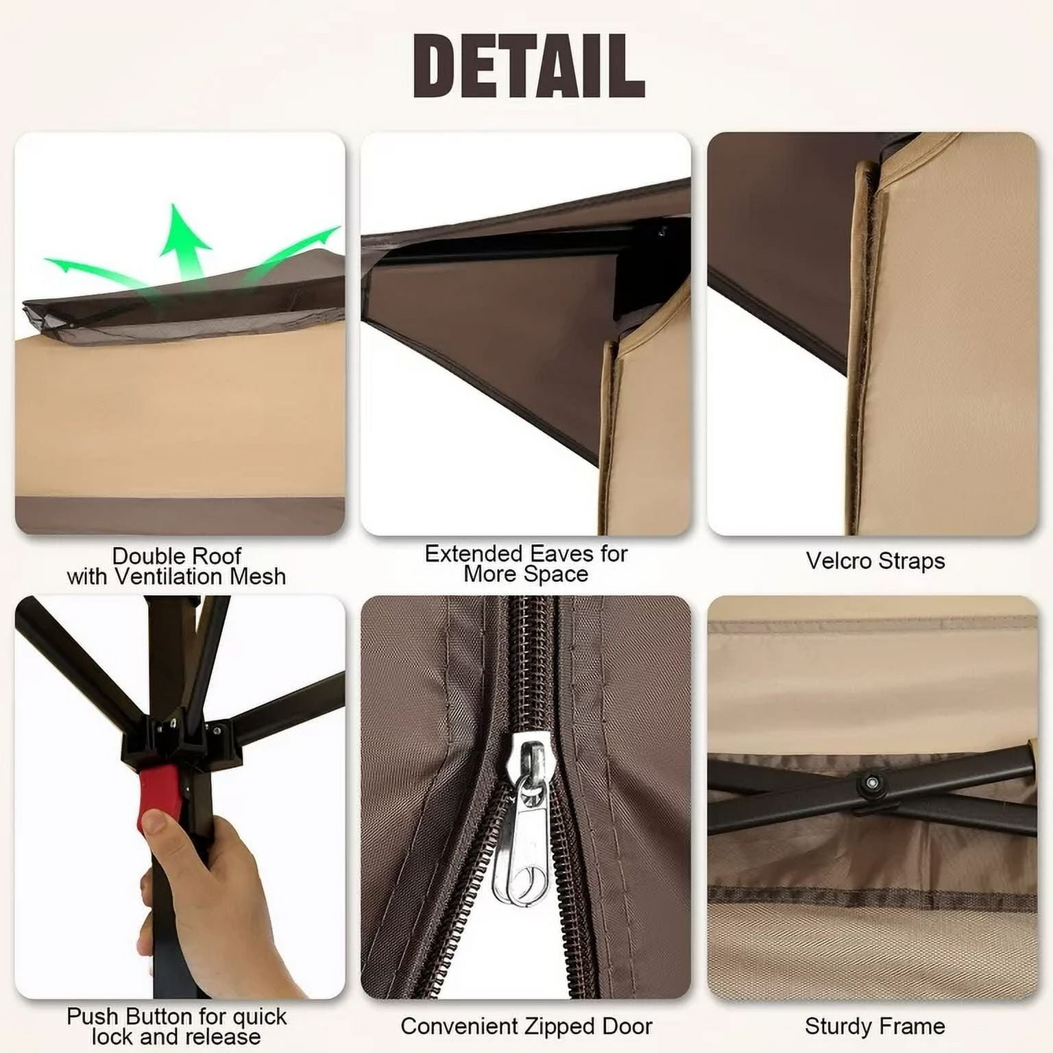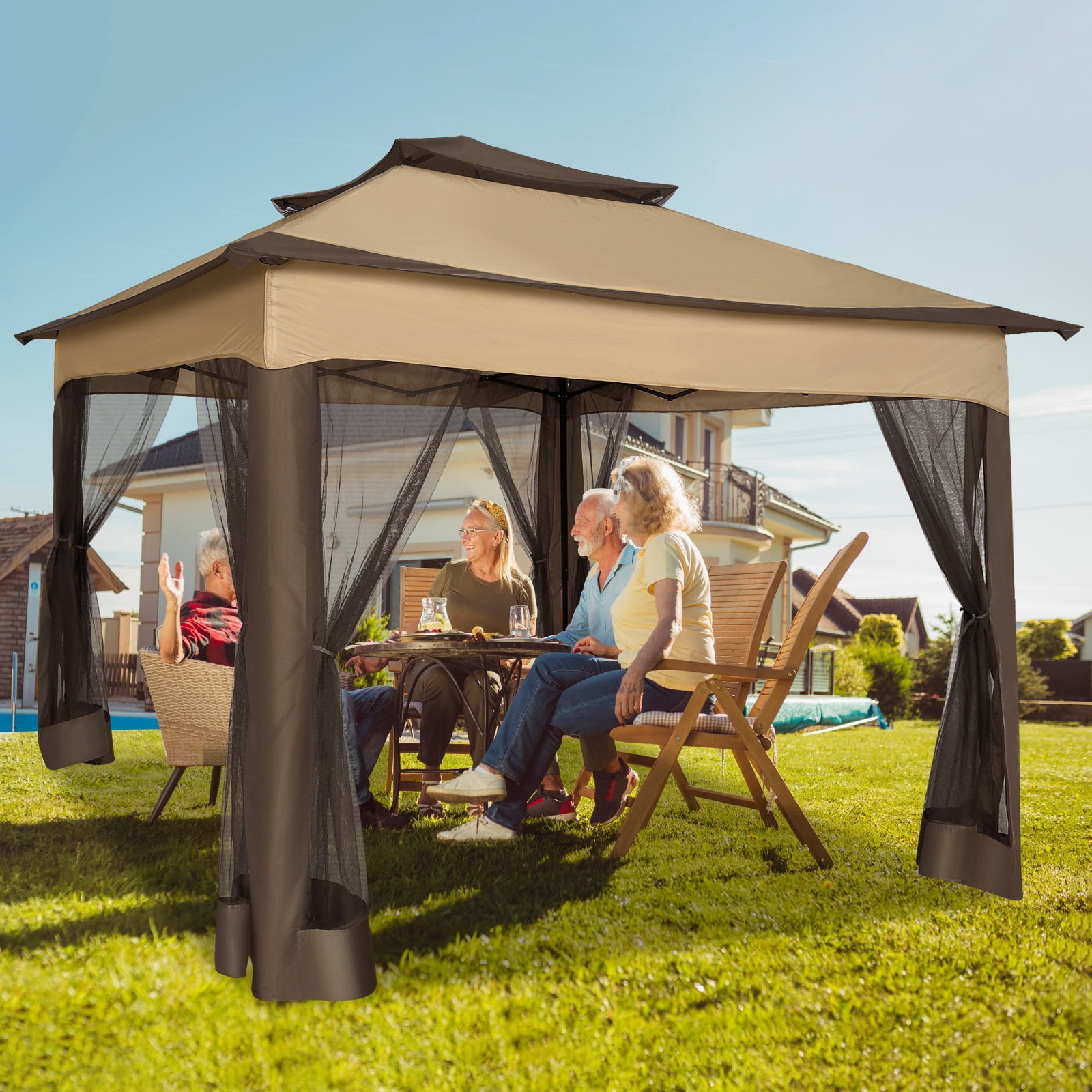 COBIZI 11×11 Pop up Gazebo Outdoor Canopy Gazebo Patio Gazebo with Mosquito Netting Canopy Shelter with 121 Square feet of Shade for Poolside, Garden, Party and Backyard, Brown