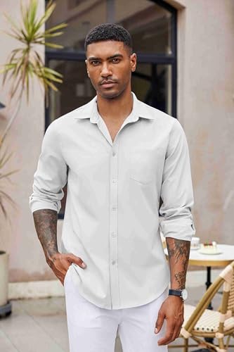 - LIGHTWEIGHT FABRIC: Crafted from high-quality, breathable, soft, sweat-absorbent and lightweight fabric, COOFANDY men’s long-sleeved casual dress shirt ensures you stay dry and comfortable all day; The wrinkle-free fabric keeps you looking sharp and polished, no matter the occasion
