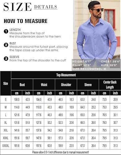 • GARMENT CARE — COOFANDY shirts are machine washable.Please refer our SIZE CHART to choose best fit for you, if you have long arms please order one size up for better fit