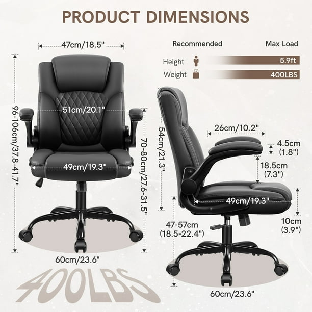Specification: COOLHUT Leather Office Chair, Big and Tall Office Chair 400LBS Wide Seat Ergonomic Computer Desk Chair High Back Executive Leather Chair Adjustable Task Chair Lumbar Back with…