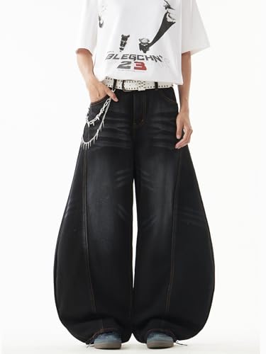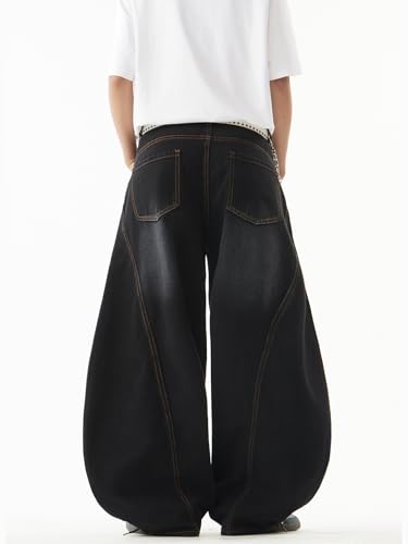 Specification: DFGIGT Baggy Barrel Jeans for Men Wide Leg Loose Fit Jeans Y2K Hip Hop Streetwear Denim Pants Oversized Relaxed Trousers 2000s Extreme Motion Skateboard Skate,K11 Black,Small