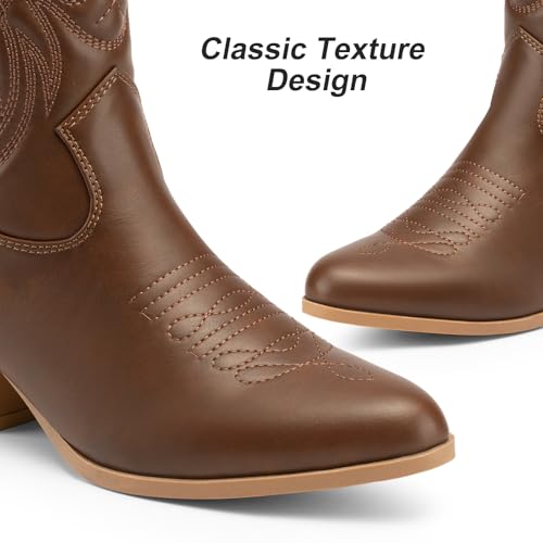 Dodow Womens Cowboy Boots Western Cowgirl Pointed Toe Zipper Mid Calf Boots Brown Size 9