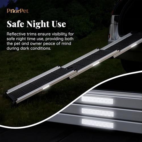 - NIGHTTIME SAFETY WITH REFLECTIVE SIDES: Car ramp for dogs enhanced with reflective sides, increasing visibility during the night, ensuring safety for your dog and others.
