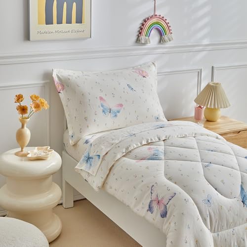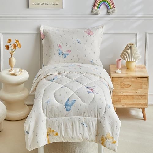 Specification: DuShow Butterfly Toddler Bedding Set,4 Pieces Bed-in-a-Bag Toddler Comforter Sheet Set,Ultra Crib Bedding Set for Toddler Girls