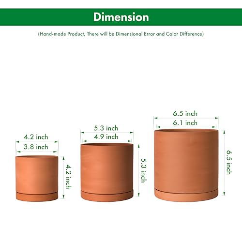 Specification: D’vine Dev Terracotta Pots for Plants, 4.2 Inch 5.3 Inch 6.5 Inch, Succulent Planter Pot with Drainage and Saucer, 40-T-A-0