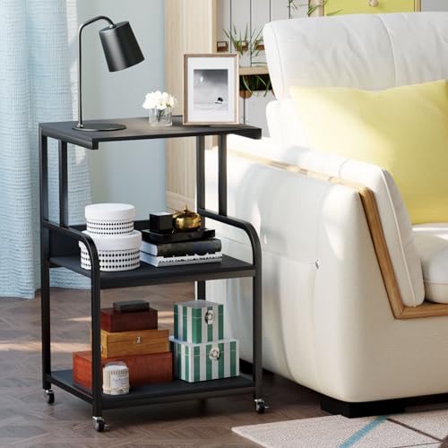 EasyCom Printer Stand- Large 3 Tier Sofa Side Table with Wheels- Industrial Printer Storage Cart- Modern Night Stands with Storage Shelf for Living Room Bedroom Office Black