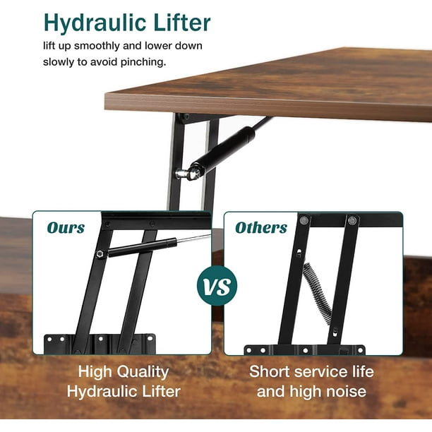 Specification: edx Adjustable Height Wooden Coffee Table with Hidden Compartments and Shelves – Perfect for Small Homes, Apartments, Reception Rooms, Rust Brown
