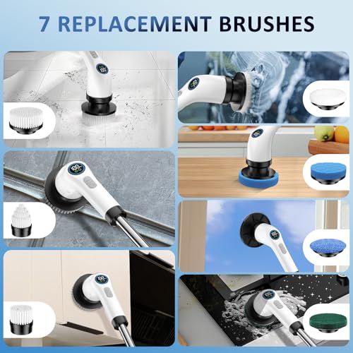 - Electric Spin Scrubber 2025 Upgraded: For those with back or knee issues, bending to clean can be torture. The shower scrubber extends to three lengths, eliminating the need to bend or kneel to scrub bathtubs and floors. Simply grip it, and it handles all cleaning tasks for you! Additionally, with its built-in large-capacity rechargeable lithium battery, one charge lasts up to 100 minutes