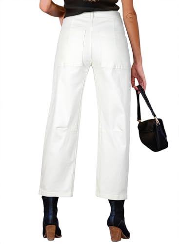 Specification: EVALESS Womens Baggy Barrel White Jeans High Waisted Wide Leg Boyfriend Denim Ankle Pants Size 12