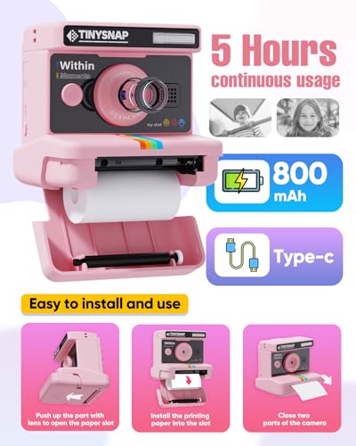Specification: Eveedo Instant Print Camera for Kids,2.4 Inch Screen Kids Instant Cameras, Christmas Birthday Gifts for Girls Age 3-12, Portable Toddler Toy for 3 4 5 6 7 8 9 10 Year Old Girls Boys (Pink)