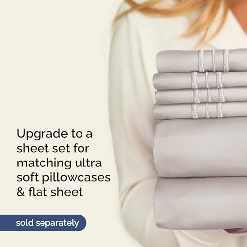 Extra Deep Queen Fitted Sheet – Hotel Luxury Single Fitted Sheet Only – Easily Fits 18 inch to 24 inch Mattress – Ultra Soft, Wrinkle & Fade Free w/Extra Deep Pocket – Breathable & Comfy – Light Grey