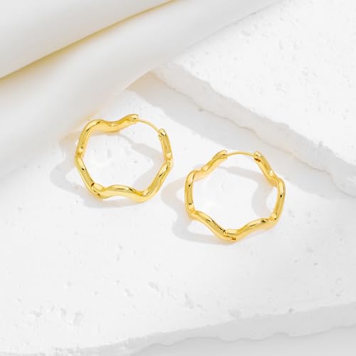 FILMOON Gold Hoop Earrings for Women 18K Gold Plated Twisted Huggie Hoop Earring Thick Open Lightweight Twisted Wave Gold Earrings