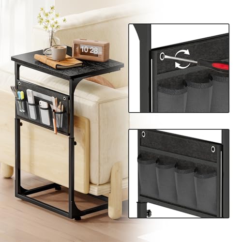 Fixwal C Shaped Side Table Adjustable Height End Table for Couch Small Sofa Table TV Tray with Storage Bag for Living Room, Bedroom & Office, Black