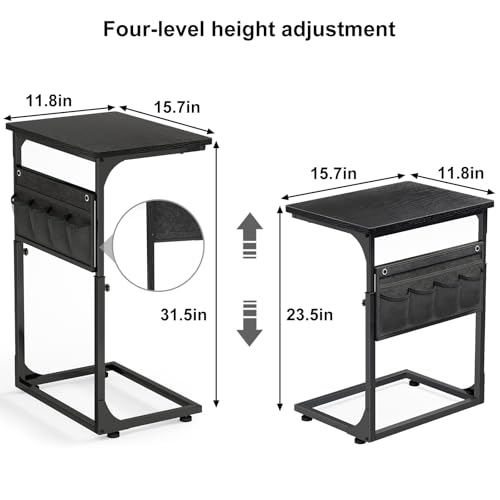 Specification: Fixwal C Shaped Side Table Adjustable Height End Table for Couch Small Sofa Table TV Tray with Storage Bag for Living Room, Bedroom & Office, Black