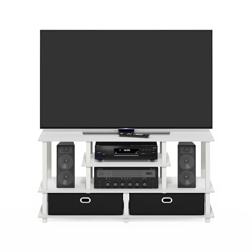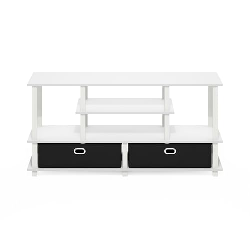 Furinno Jaya TV Stand, 4-Tier Entertainment Center, TV Console for TV up to 55 Inch with 2 Bins and Open Shelves, for Living Room, Bedroom, White