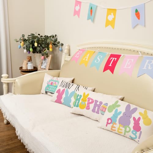 Specification: GEEORY Easter Pillow Covers 12×20 Set of 4 Easter Decorations for Home Bunny Truck Hello Peeps Hip Hop Pillows Easter Decorative Throw Pillows Spring Easter Farmhouse Decor GA477-12